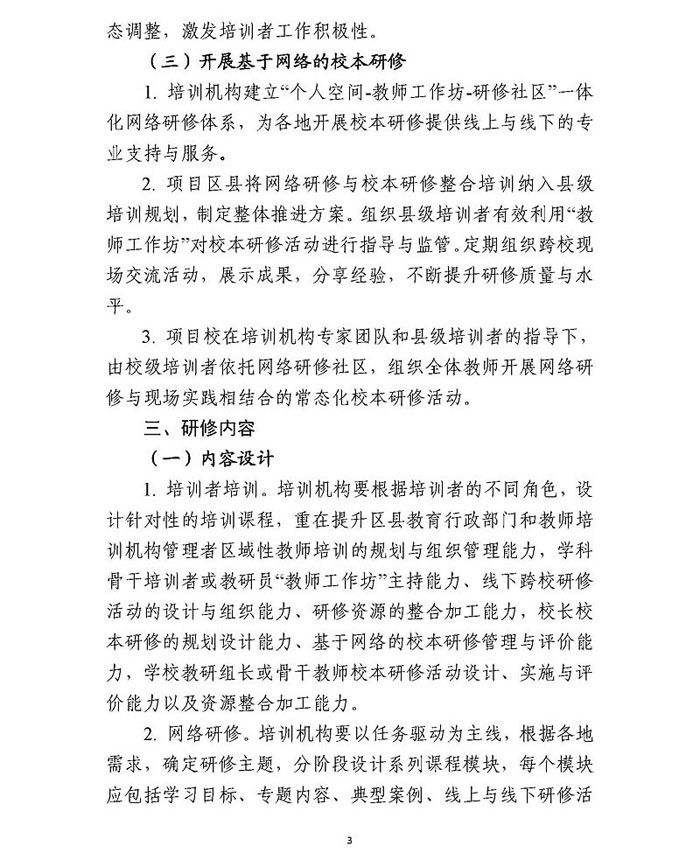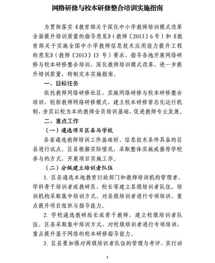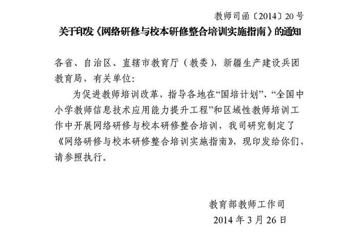 教育部关于印发《网络研修与校本研修整合培训实施指南》的通知