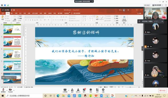 首先分享的是夏秀同学,她为我们带来的是《山的味道,海的味道》。夏秀同学结合自身经历,总结出了自己的观点:站在孩子的角度看问题,才能真正理解小孩子。最后,她引用了陶行知先生的一句话:“我们必须变成小孩子,才配做小孩子的先生。”