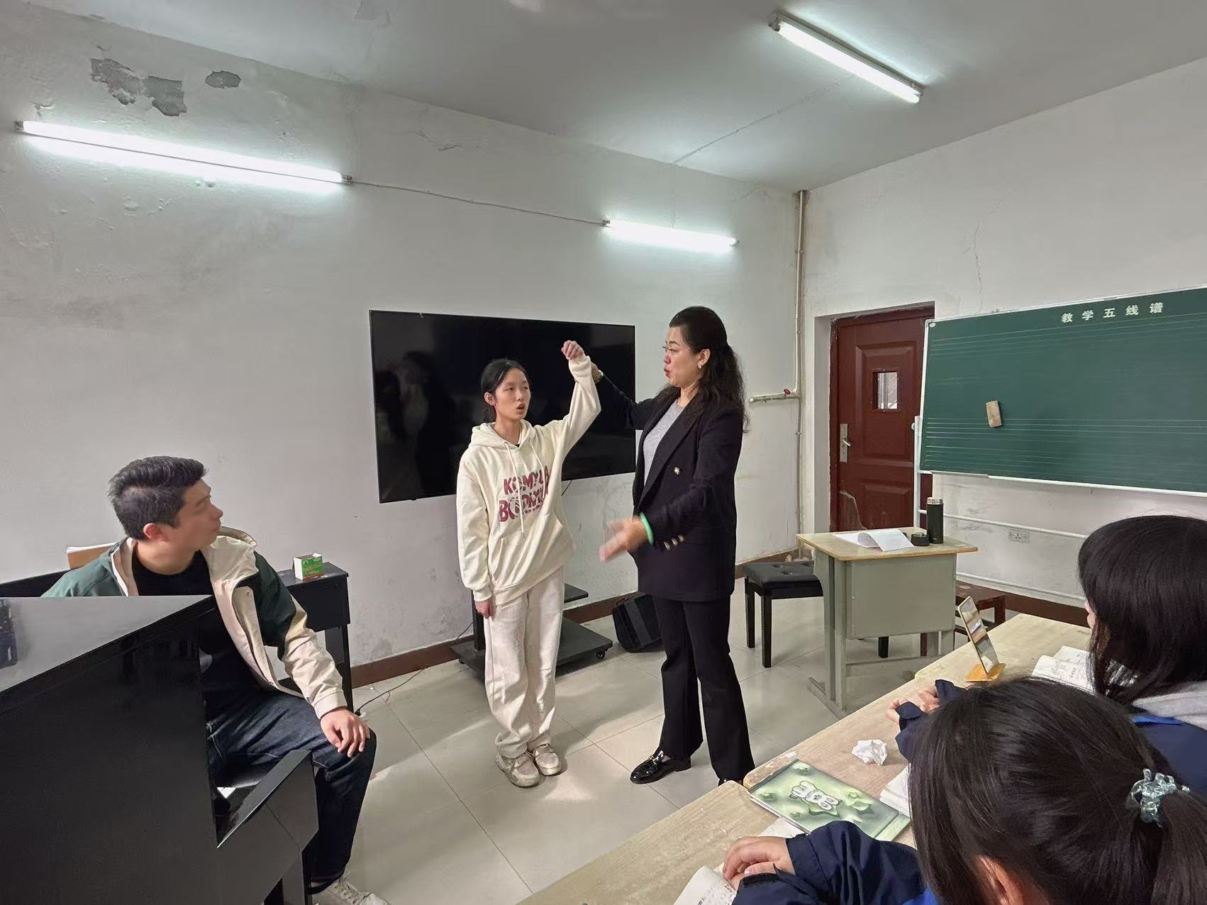 音乐课上,刘畅副院长根据联考大纲,与师生分享联考中视唱练耳拿高分的方法。对我校全体音乐教师进行了培训,对我校音乐学生指出了训练方法的注意事项,教学内容丰富,教学过程流畅,教学氛围热烈,充分与学生互动,教学效果明显。